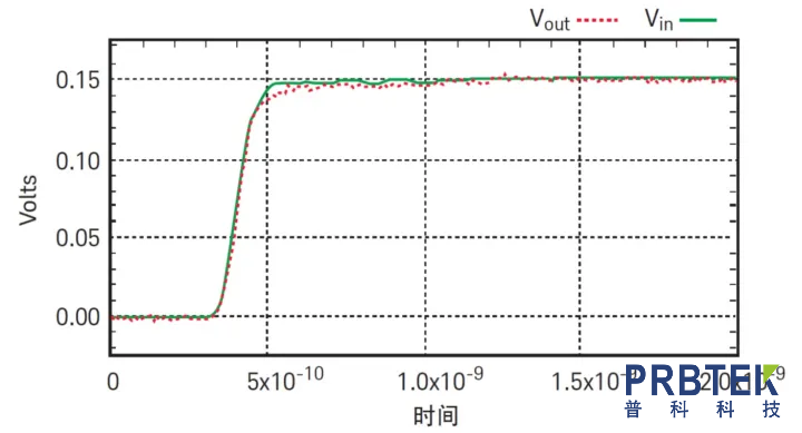 图 3. 差分探头测量 100 ps 阶跃信号的时域响应